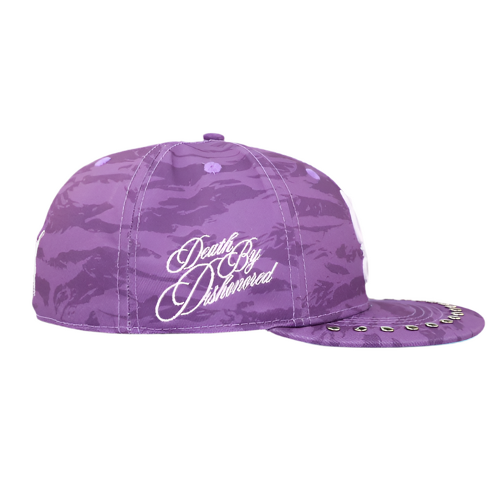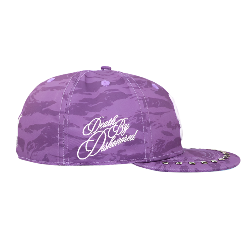 Death By Dishonored Side Embroidery, metal studs on brim, Jumbo Angel embroidery.